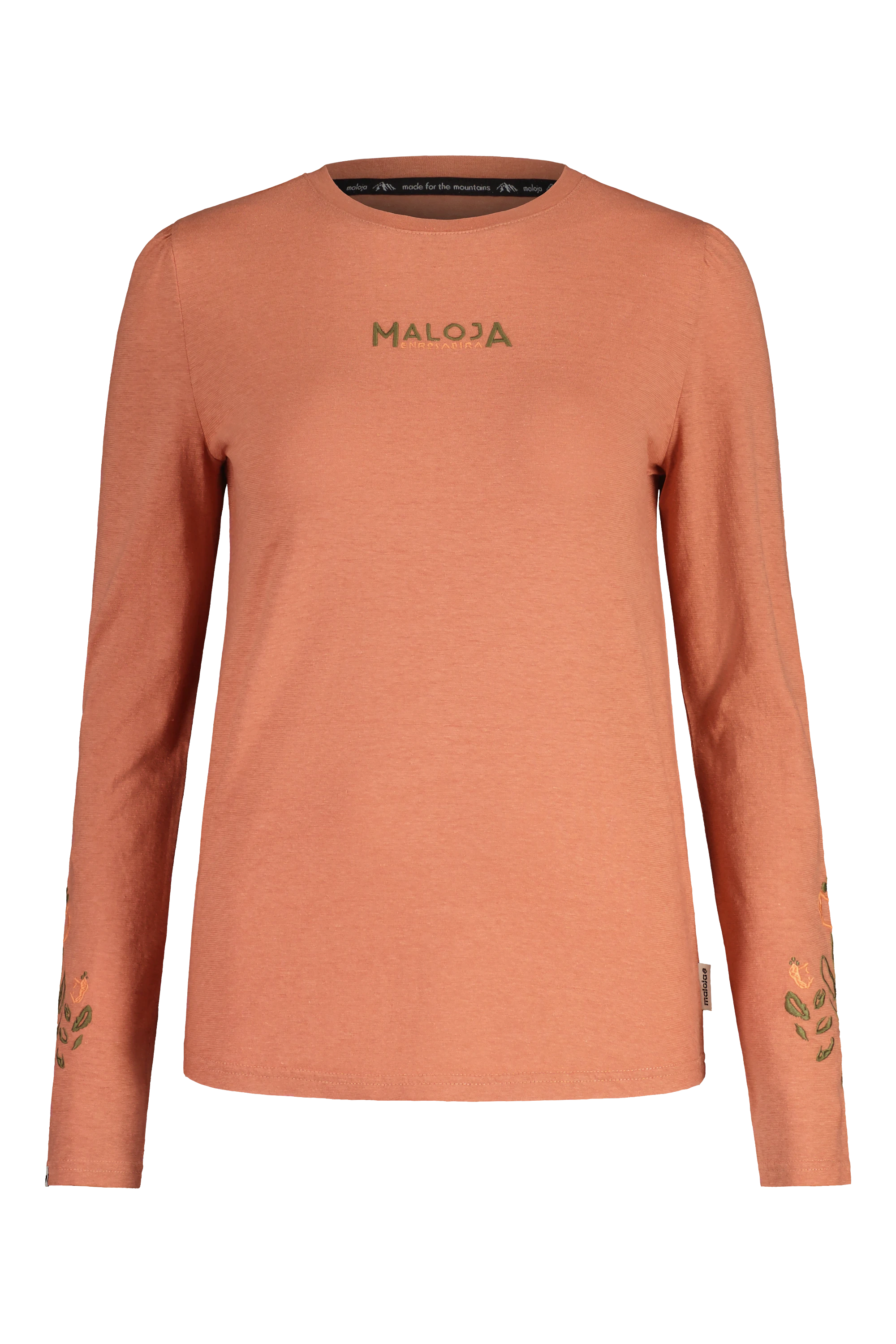 maloja MoenaM ist ein attraktives Freizeit-Shirt aus BioBaumwolle und Hanf-Gemisch. Das angenehm weiche Shirt mit Rundausschnitt hat an den Ärmeln ein hübsches Muster aufgedruckt.