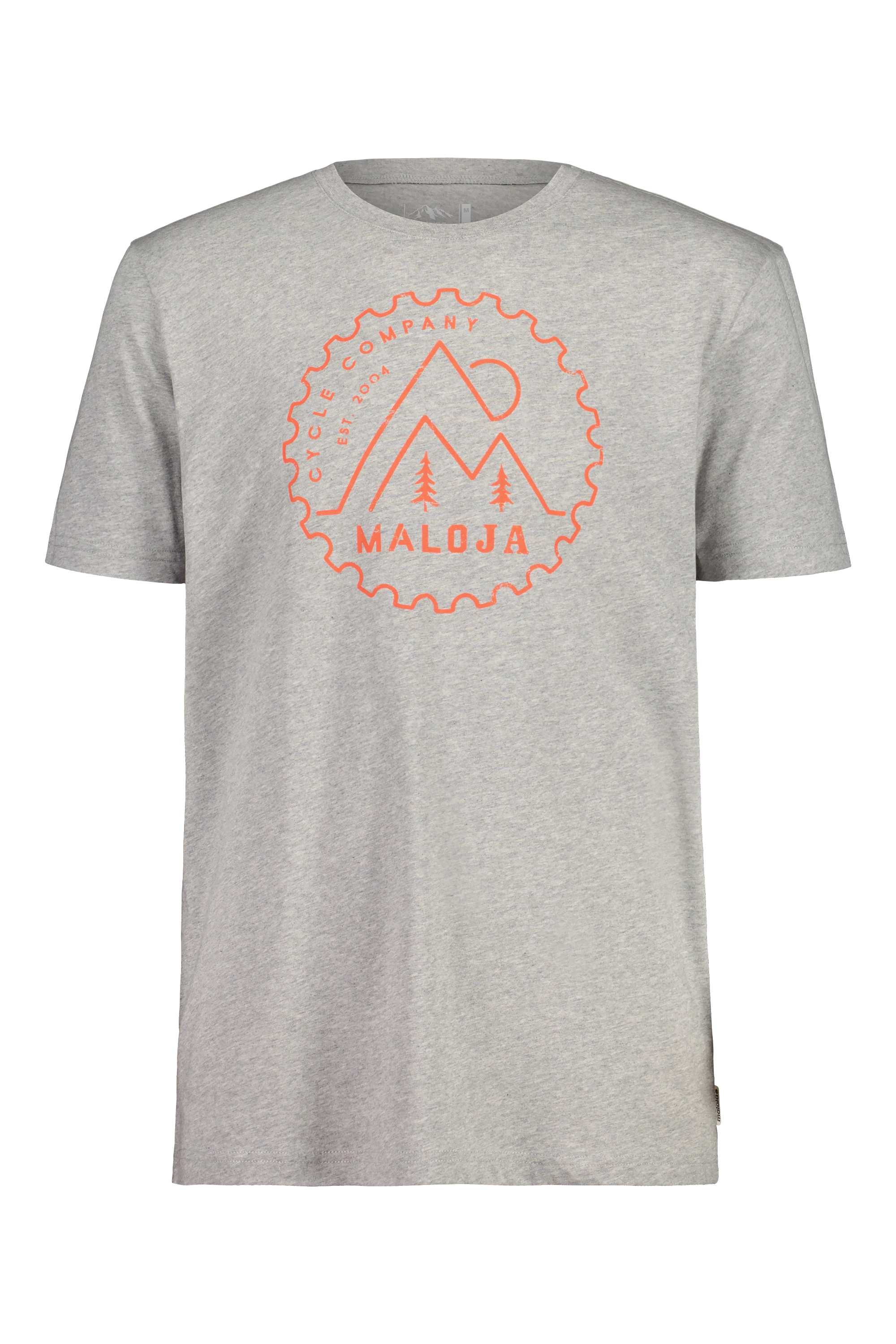 maloja PortlaM ziert ein cooles abstraktes Logo mit dem maloja Logo innerhalb eines Zahnrades. Das T-Shirt mit Rundausschnitt ist aus angenehm weicher BioBaumwolle.